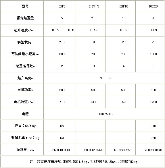 建筑爬架電動葫蘆、油罐群吊電動葫蘆、DHP群吊環(huán)鏈電動提升機是我公司最新研制的新產(chǎn)品,它保留了手拉葫蘆輕巧方便的特點,又改進了手拉葫蘆人工操作,提升速度慢的不足。DHP型系列電動葫蘆集電動葫蘆和手拉葫蘆的優(yōu)點與一身,采用盤式制動電機做工作,行駛減速器減速。具有機構(gòu)緊湊、體積小、重量輕、效率高、使用方便、安全可靠、維護簡單等特點。因為群吊電動葫蘆起升速度慢更適合建筑工程領(lǐng)域的爬架,模具的提升,大型油罐的群吊,糧倉罐體整體提升,水泥罐體制作等領(lǐng)域。DHP型系列電動葫蘆適用于低速小行程的物料裝卸、設(shè)備安裝、礦山及工程建筑等方面,為您的工作帶來便利。