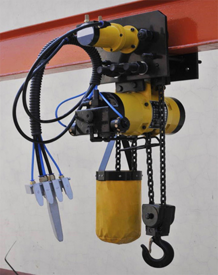 2、吊鉤式氣動葫蘆安裝:將吊鉤就坐落于安裝構(gòu)造上。確保吊鉤鎖已合閉;